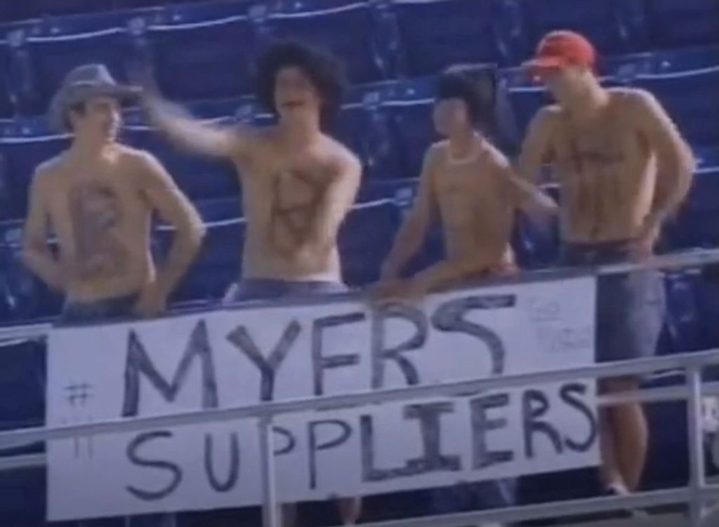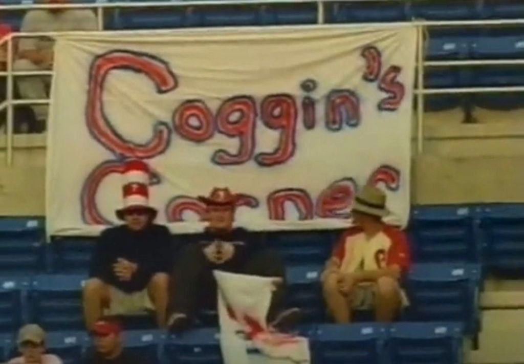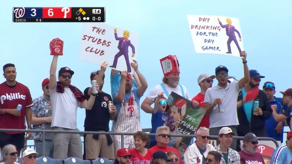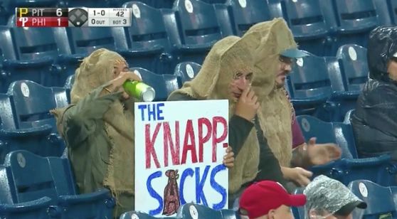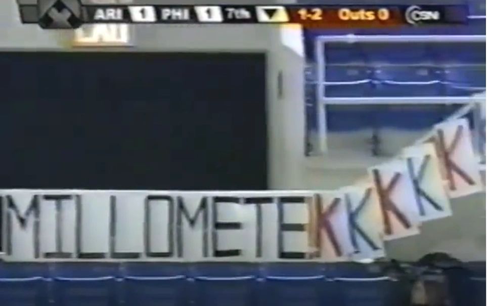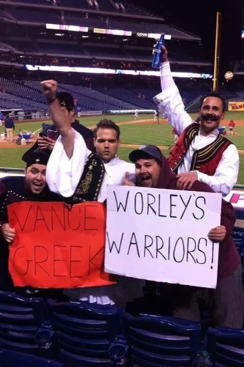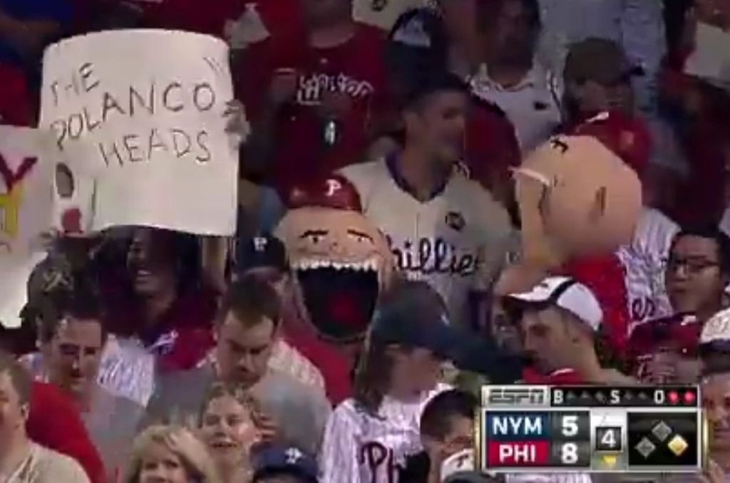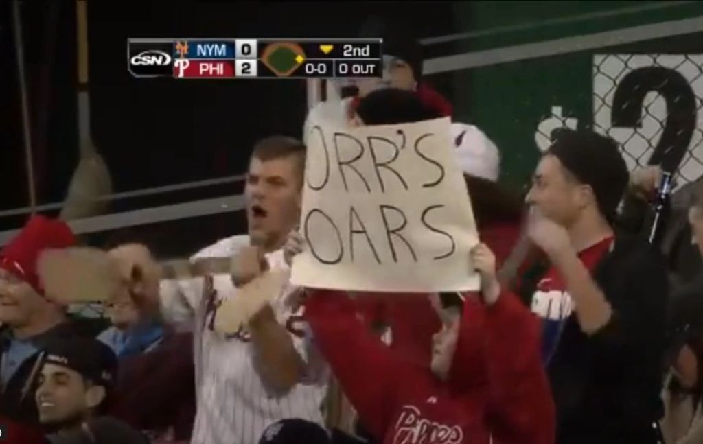 Philadelphia sports fans are notorious for their level-headedness and logical sports opinions. Just look at the example above from 1907. Over the past 130 years, at least, Phillies fans have formed groups with one another to voice their cheers and jeers in unison. Some groups are player specific while others are general team fan groups. The “Golden Age” of Phillies fan groups is arguably the late-90s/early-00s. The teams weren’t that great and cheap seats were plentiful at the cavernous Vet. What better way to show your support than painting a few clever words onto a bedsheet? Bonus points for relevant attire.