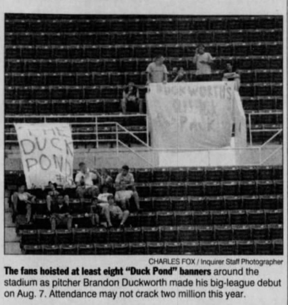 Paul Byrd made 56 starts for the Phillies between 1998 and 2001. In his lone All-Star season (1999), he was 15-11 with a 4.60 ERA and led the majors in hit by pitch. Regardless, a few high schoolers deemed him interesting enough to be the focus of their fan group in 1999. The Byrd’s Nest, which predated the Wolf Pack, was founded by Richie Ashburn’s grandson and the group attended more than six games together. On one occasion, one of the group members skipped an SAT prep class to attend a game. They were invited down to the clubhouse later to meet Byrd (you can see this yourself on the 1999 Phillies video yearbook on YouTube).