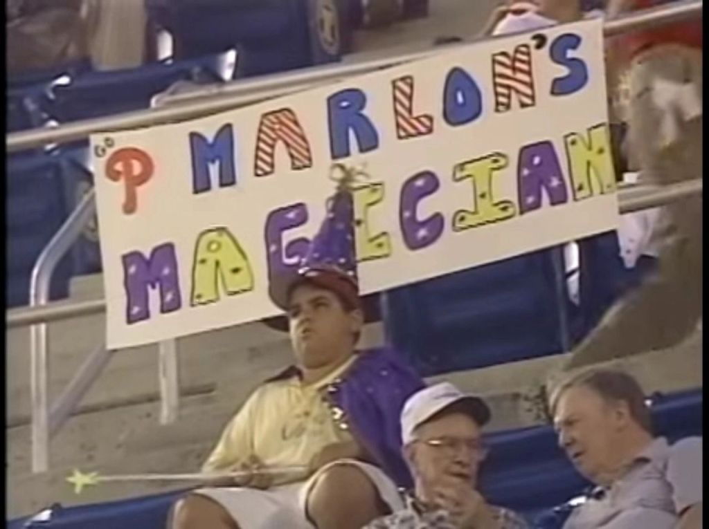 Rex “Wonderdog” Hudler finished his 13 year MLB career with the Phillies in 1998. Over two seasons with the club, Hudler slashed .196/.247/.319 in 175 plate appearances. Timothy McCracken and a friend appreciated the way Hudler played the game. “[He] was just one of those guys we watched that made the game look so fun. And he had a great nickname for it. We were also trying to get into the fan club thing casue the schill-o-meter was at its peak that summer.” Evidently, Hudler really appreciated the duo. On one occasion, he came over to the guys in the stands and gave them hats, signed balls and autographed their sign. “He just kept saying thank you over and over again.”